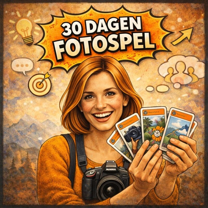 Het 30 Dagen Fotospel is een inspirerend kaartspel met dagelijkse foto-opdrachten en reflectievragen. Het helpt fotografen om vaker te fotograferen, anders te kijken en creatiever te werken. Geschikt voor zowel beginners als gevorderden.